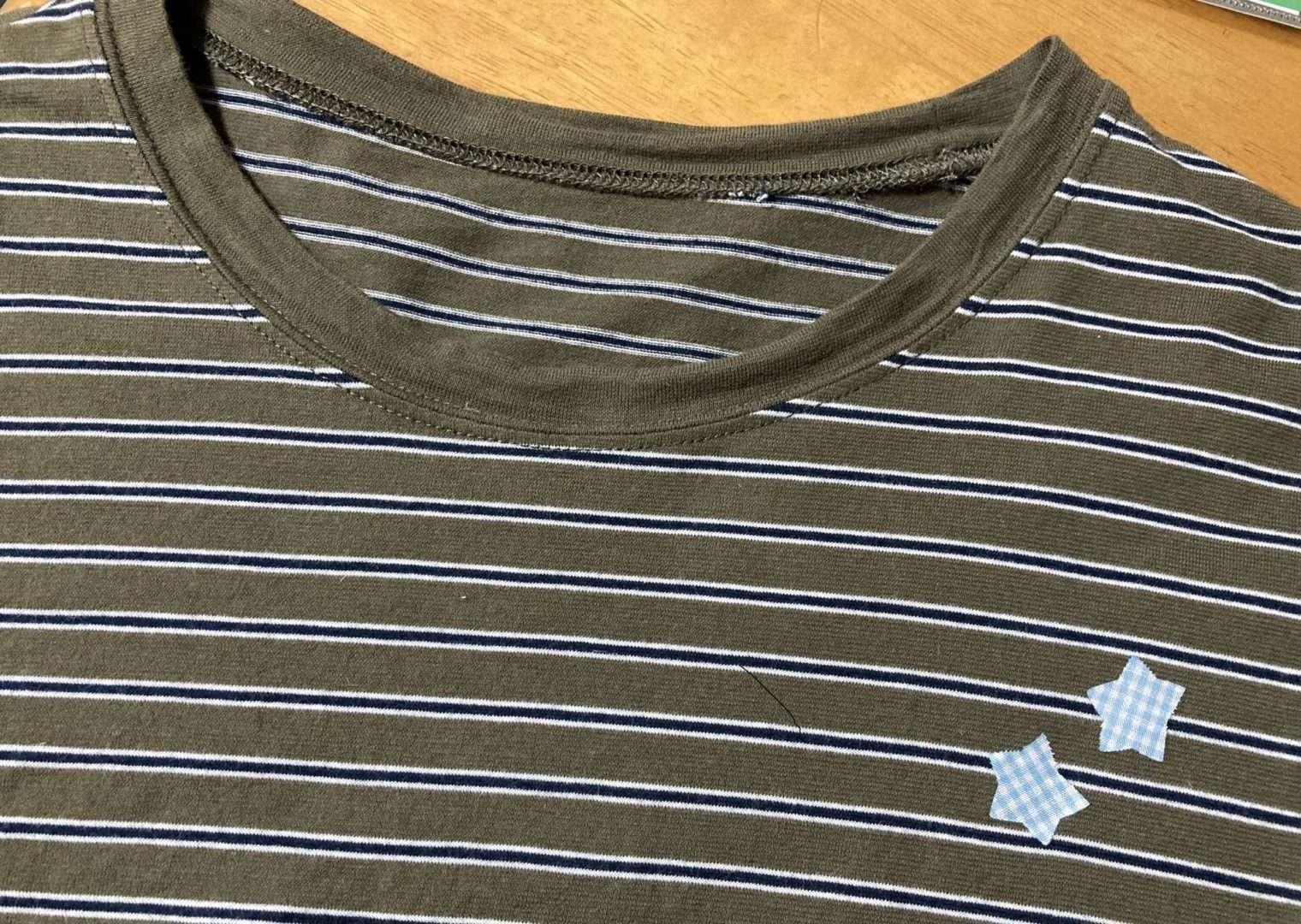 このシールのおかげで長男は前が分かって自分で着ることができます。