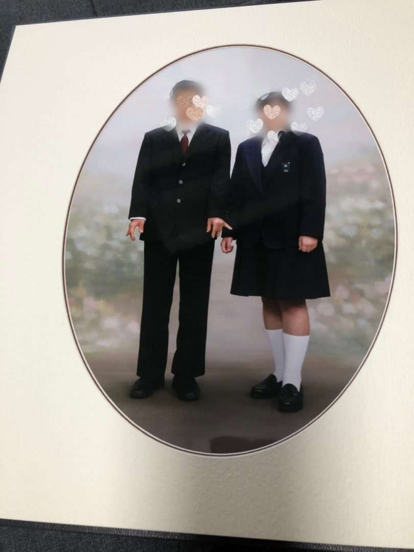 そろって卒業式だった我が家の子ども達の記念に家族で写真を撮影しました。